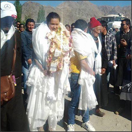 Tashi Laskit (class of 2012) arrived this morning in Ladakh after being the first girl from Ladakh to summit Mount Everest as part of the first ever ‘all girl’ expedition organized by the Indian National Cadet Corps (Photos by Genley Ngawang Yeshe of her arrival at Rinpoche Bakula airport in Leh).